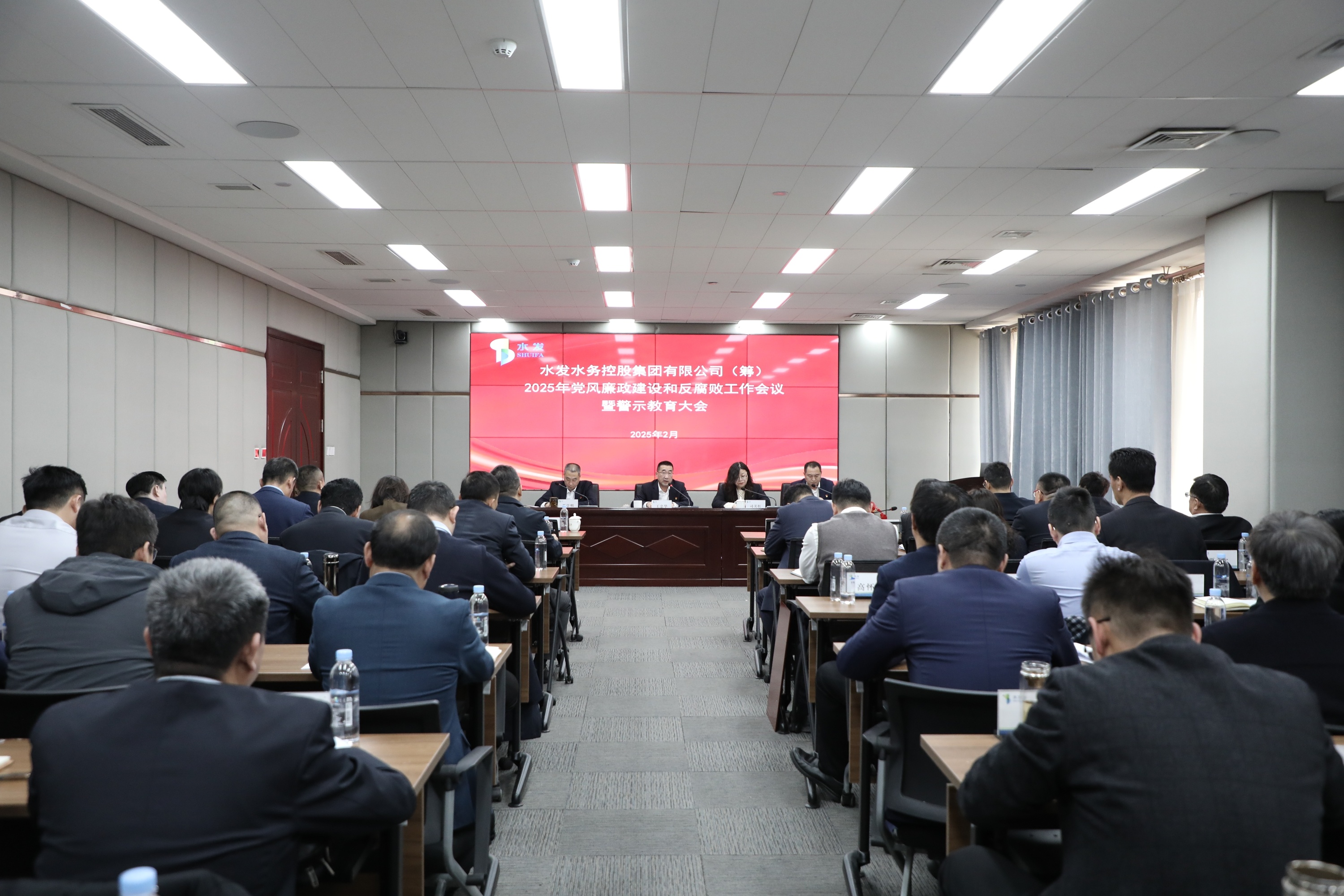 2月21日,水發(fā)水控集團召開2025年黨風廉政建設(shè)和反腐敗工作會議暨警示教育大會。水發(fā)集團紀委紀律檢查一室主任司美紅到會指導,水發(fā)水控集團黨委書記、董事長王忠華出席會議并講話,黨委副書記、副總經(jīng)理(主持經(jīng)理層工作)晉學明主持會議。