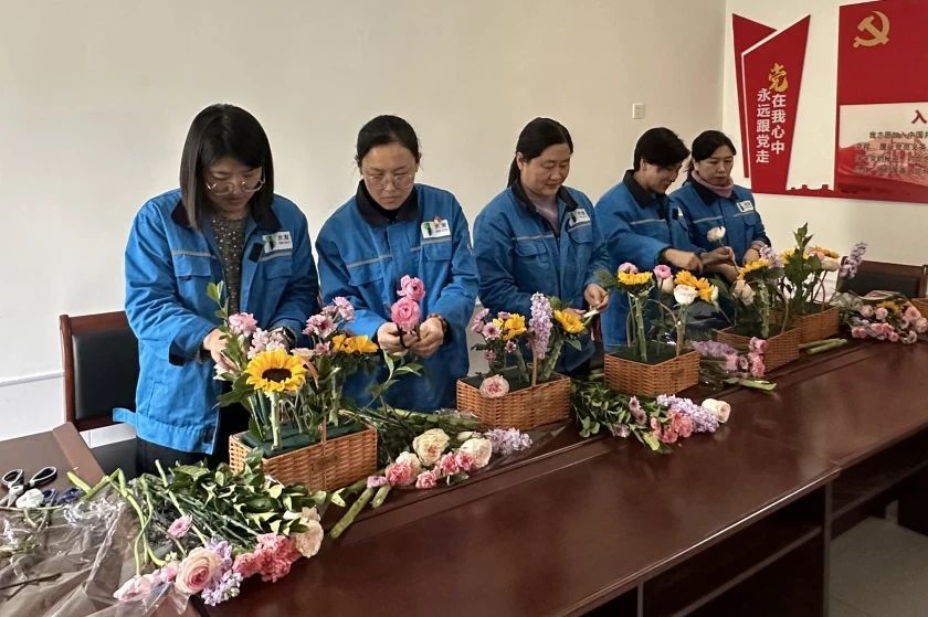 章丘眾興水務(wù)有限公司組織女職工參加插花活動,經(jīng)過兩個多小時精心的顏色搭配、造型構(gòu)造,一支支單調(diào)的花變成一束束各具特色的插畫作品,承載著大家對生活和工作的熱愛。
