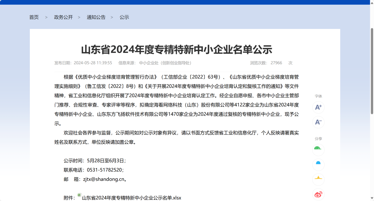 近日,山東省工業(yè)和信息化廳公示了山東省2024年度專精特新中小企業(yè)名單。經(jīng)自評(píng)申報(bào)、市級(jí)審核推薦、省級(jí)專家評(píng)審等程序,山東水發(fā)黃水東調(diào)工程有限公司進(jìn)入公示名單,順利通過(guò)山東省2024年度專精特新中小企業(yè)認(rèn)定。