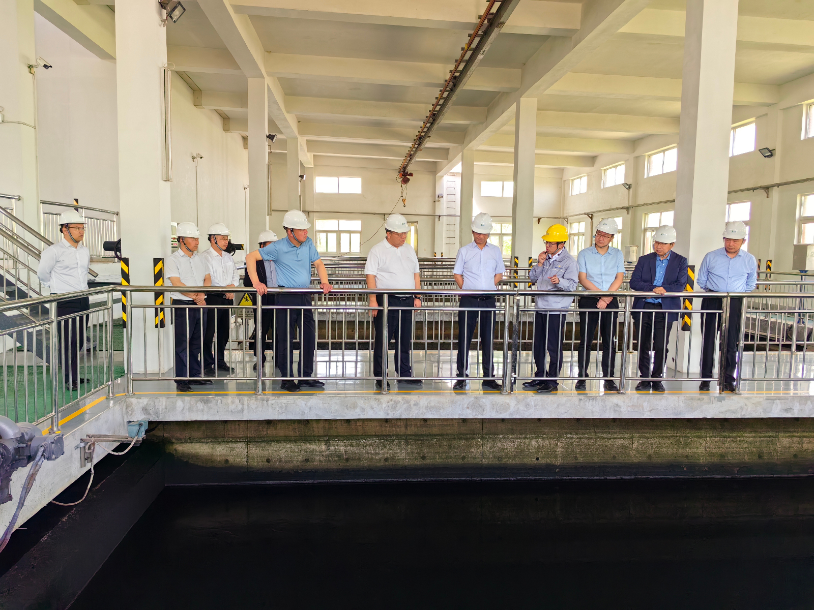 李建軍一行實(shí)地考察了濰坊水發(fā)供水集團(tuán)第二平原水庫(kù)、黃水東調(diào)工程濰北二庫(kù)加壓泵站、惠澤第二水廠、智慧水務(wù)平臺(tái)等生產(chǎn)一線部門(mén)。詳細(xì)了解了濰坊水發(fā)供水集團(tuán)供水能力、運(yùn)營(yíng)管理情況以及未來(lái)發(fā)展規(guī)劃,雙方就原水水質(zhì)指標(biāo)情況、自來(lái)水處理工藝、運(yùn)營(yíng)成本管控等方面進(jìn)行了深入探討。