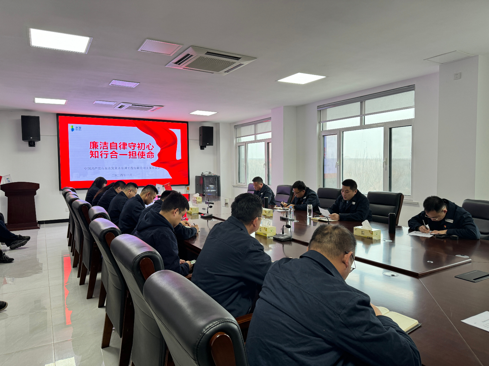 2024年春節(jié)將至,為扎實推進新時代廉潔文化建設(shè),營造風(fēng)清氣正的節(jié)日氛圍。1月31日,黃水東調(diào)黨支部組織開展以“廉潔自律守初心 知行合一擔(dān)使命”為主題的黨風(fēng)廉政教育活動,釋放廉潔信號,營造風(fēng)清氣正、廉潔過節(jié)的良好氛圍。黃水東調(diào)黨支部全體黨員及干部職工參加活動。
