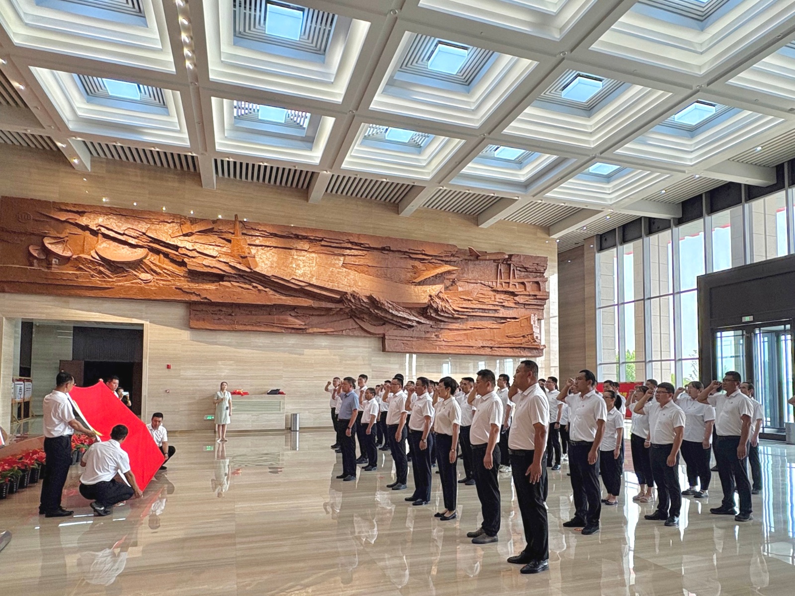 參觀前,全體黨員在黨旗下莊嚴(yán)宣誓,重溫入黨誓詞,鏗鏘有力的誓言,表達(dá)了傳承榜樣精神、堅守初心使命的決心。